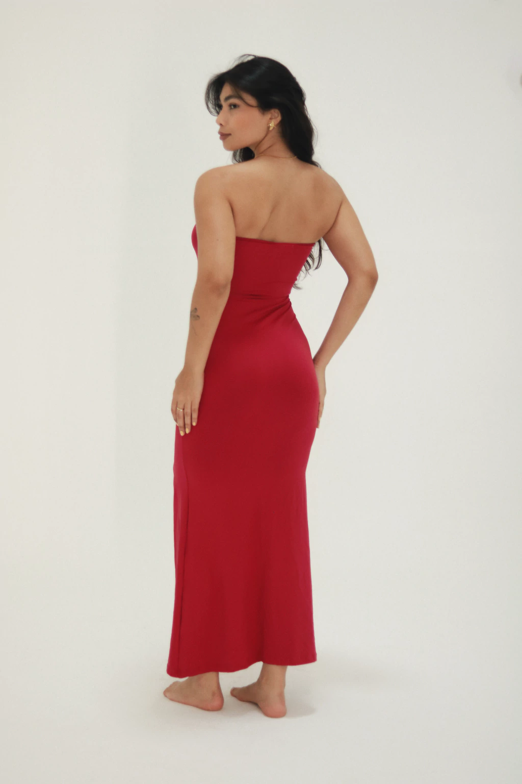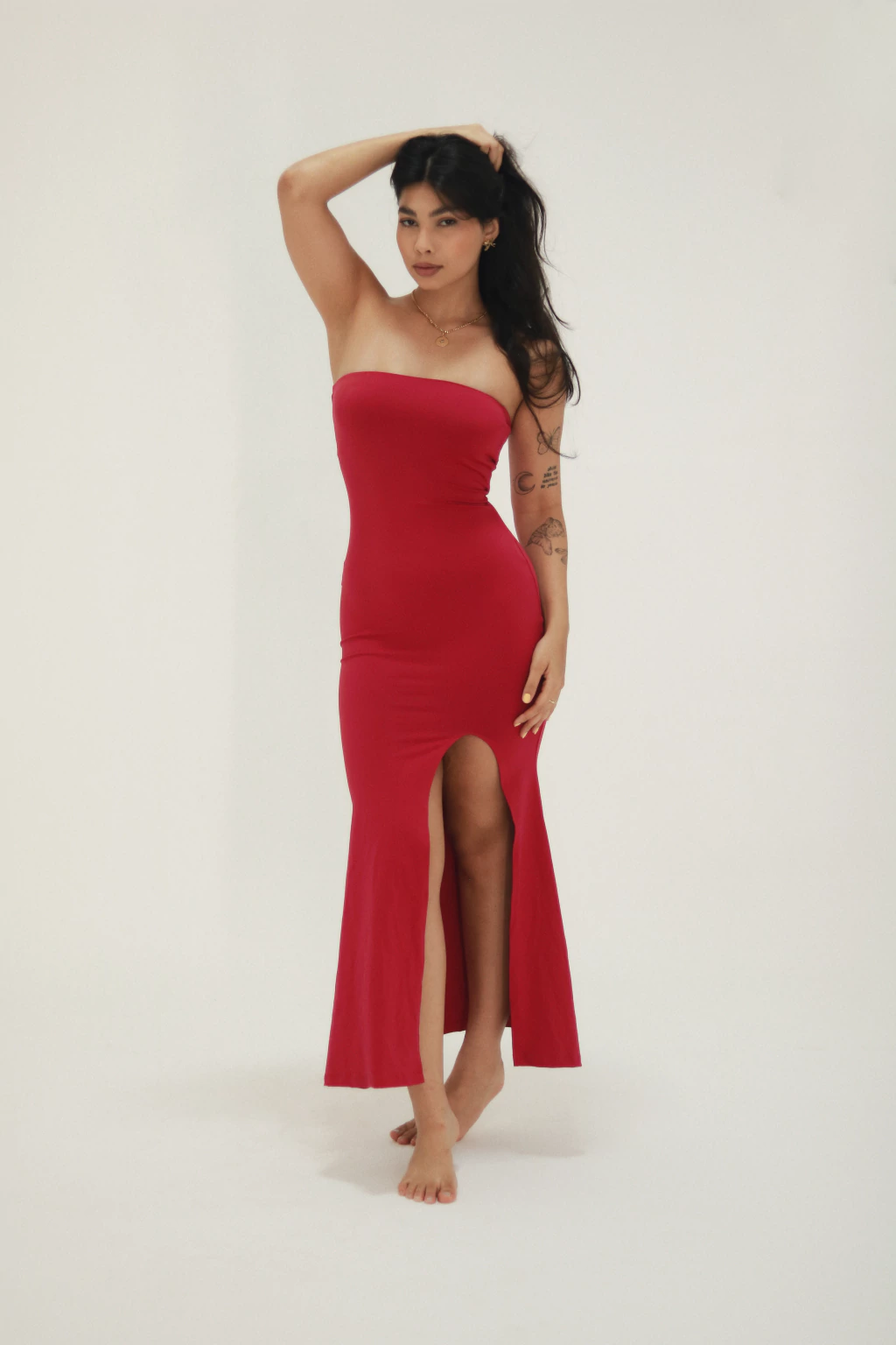 Com design longo, realçado pela fenda frontal que traz dinamismo ao modelo. O estilo tomara que caia valoriza a linha do pescoço e os ombros, criando uma silhueta alongada e delicada. O busto, em tecido duplo, oferece maior estrutura, evitando marcações indesejadas e garantindo um caimento perfeito. Confeccionado em tecido premium de poliamida com elastano, o vestido oferece flexibilidade, conforto e durabilidade, mantendo sua forma e aparência impecáveis ao longo do tempo. O Vestido Eclipse é a escolha ideal para quem busca um look elegante, sofisticado e confortável para ocasiões especiais.